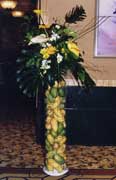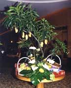 into a mango paradise, with the event backdrop, rostrum, stage setup and
