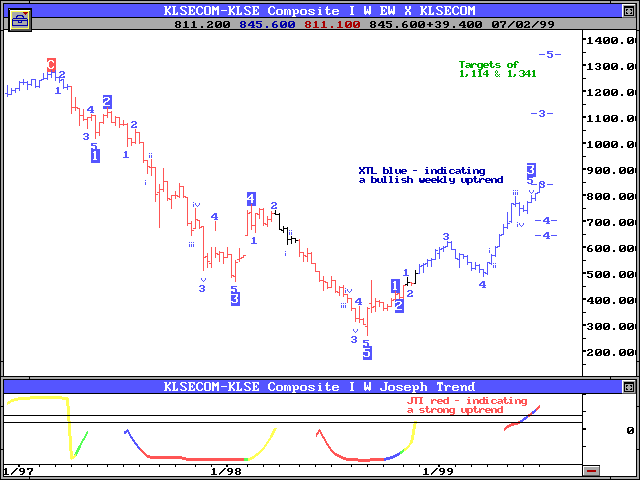 July may be a potential hot-spot for the market, according to the 16th century astrologer, called Nostrodamus. I will be presenting material on this and much more at a seminar on 24 July 1999 at Holiday Villa, Subang Jaya at 7.30pm. There will be a second speaker to talk about the fundamental portion for the KLSE. He is Laurence Lau, director of the Market Pulse newsletter. Together, we will give you the best technical and fundamental picks for the coming month.